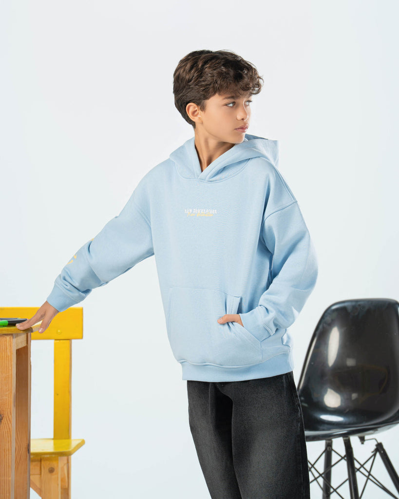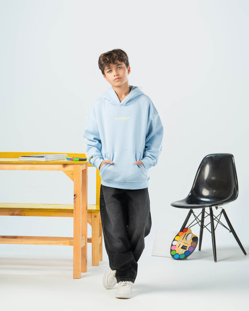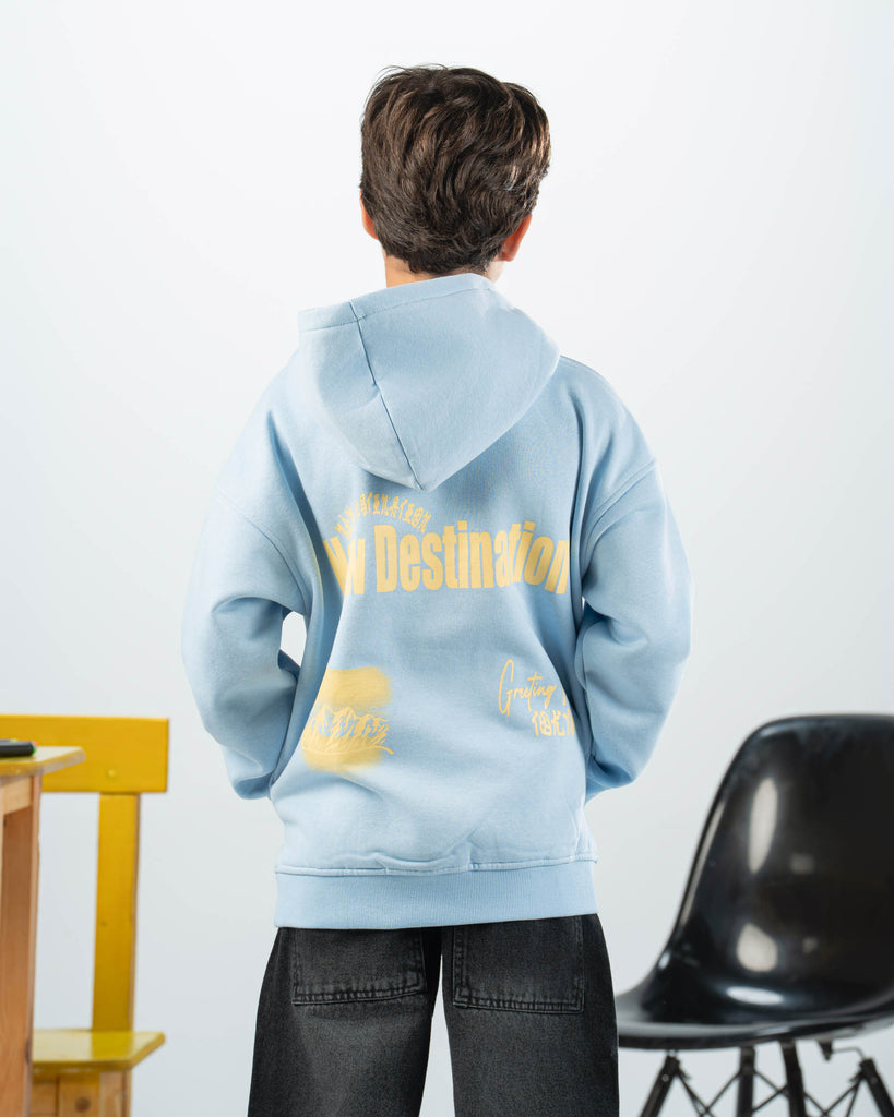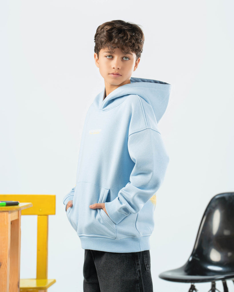 Oversized fit hoodie made of cotton fabric with a brushed fleece interior. Long sleeves and contrast prints on the front and Back. Ribbed trims.