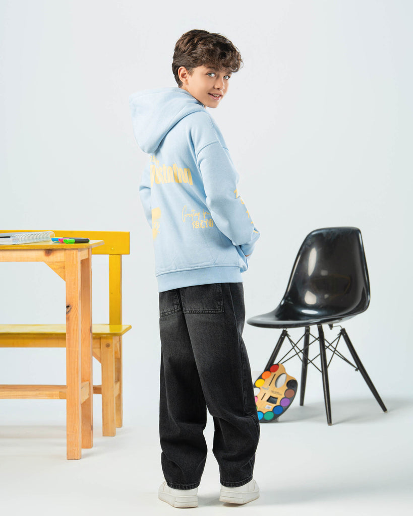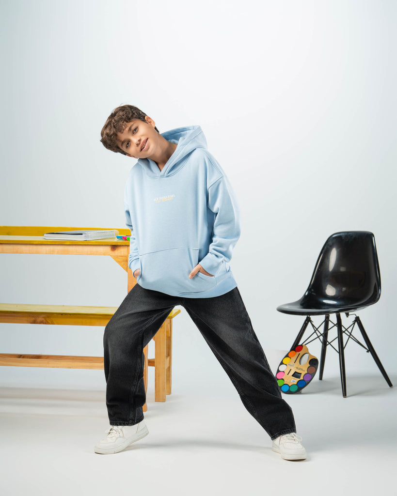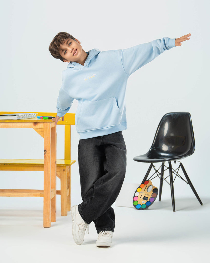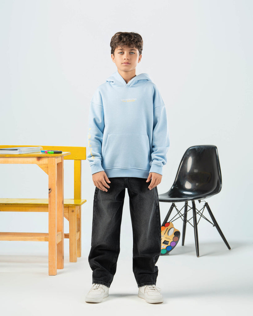 Oversized fit hoodie made of cotton fabric with a brushed fleece interior. Long sleeves and contrast prints on the front and Back. Ribbed trims.