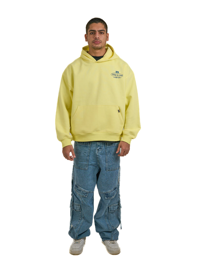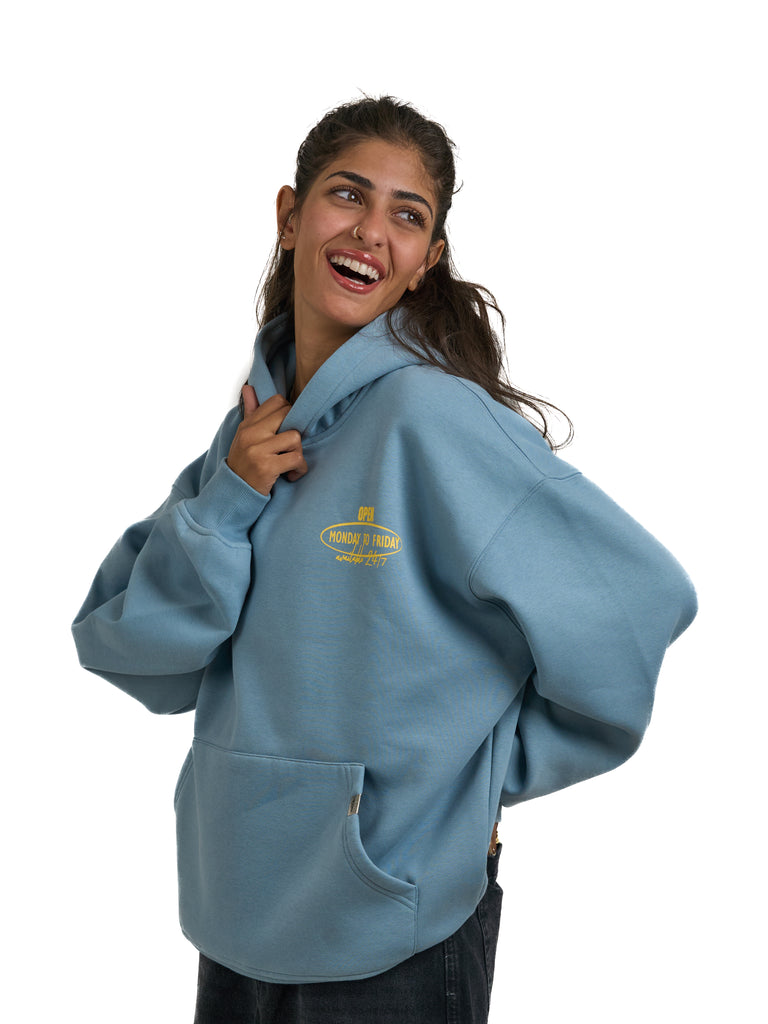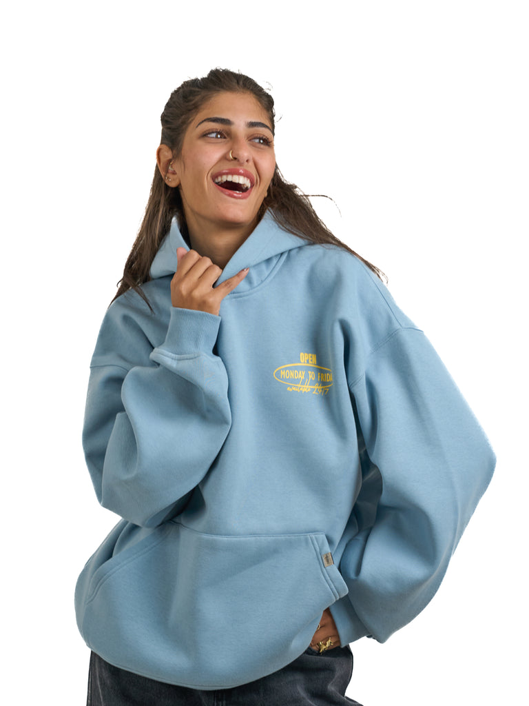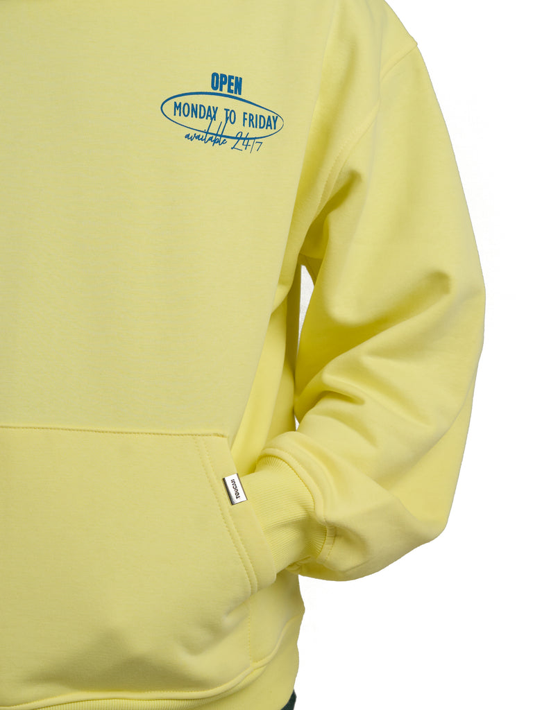 Oversized fit hoodie made of cotton fabric with a brushed fleece interior. Long sleeves and contrast prints on the front and back. Ribbed trims.