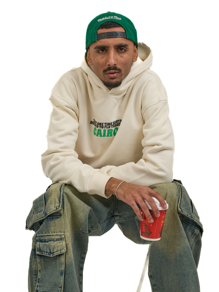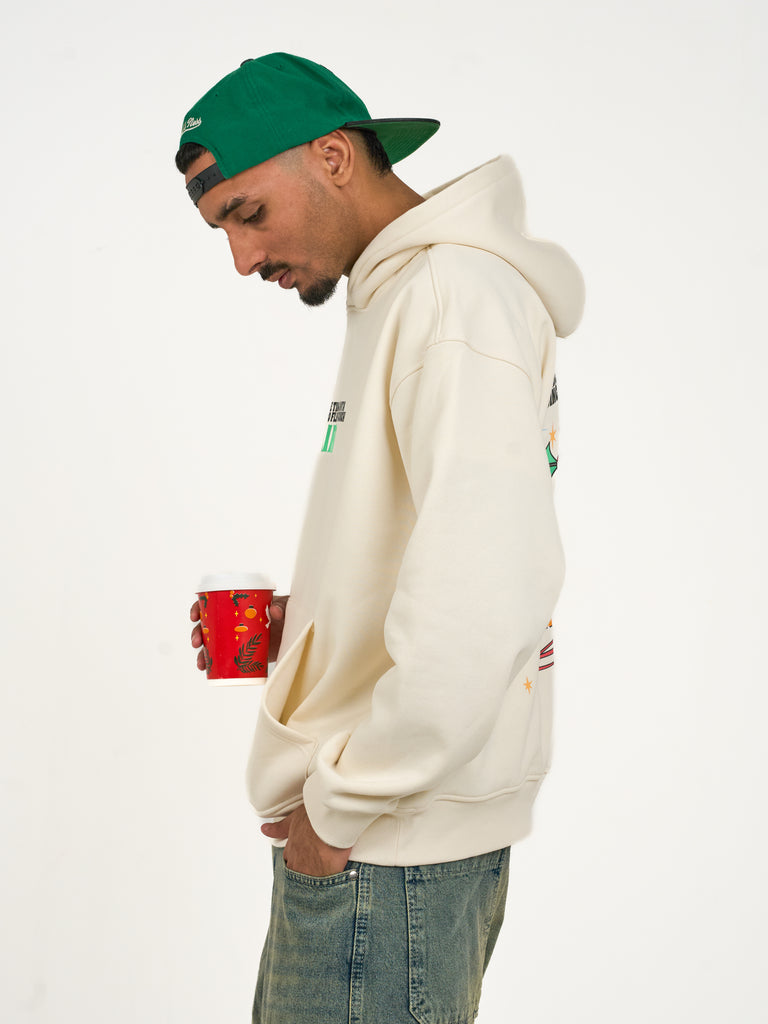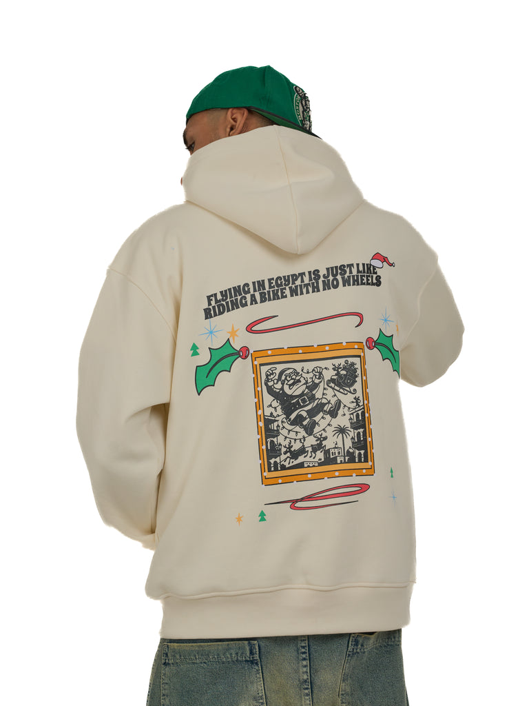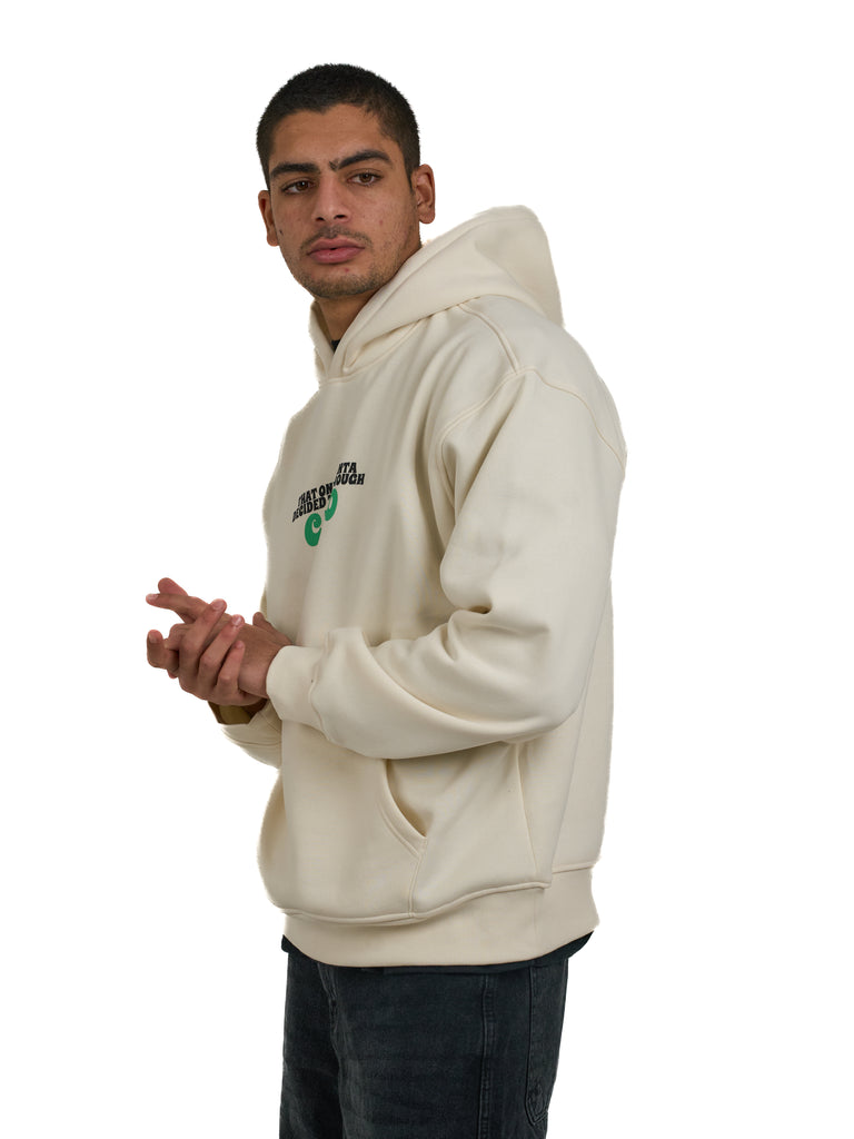 Oversized fit hoodie made of cotton fabric with a brushed fleece interior. Long sleeves and contrast prints on the front and back. Ribbed trims.