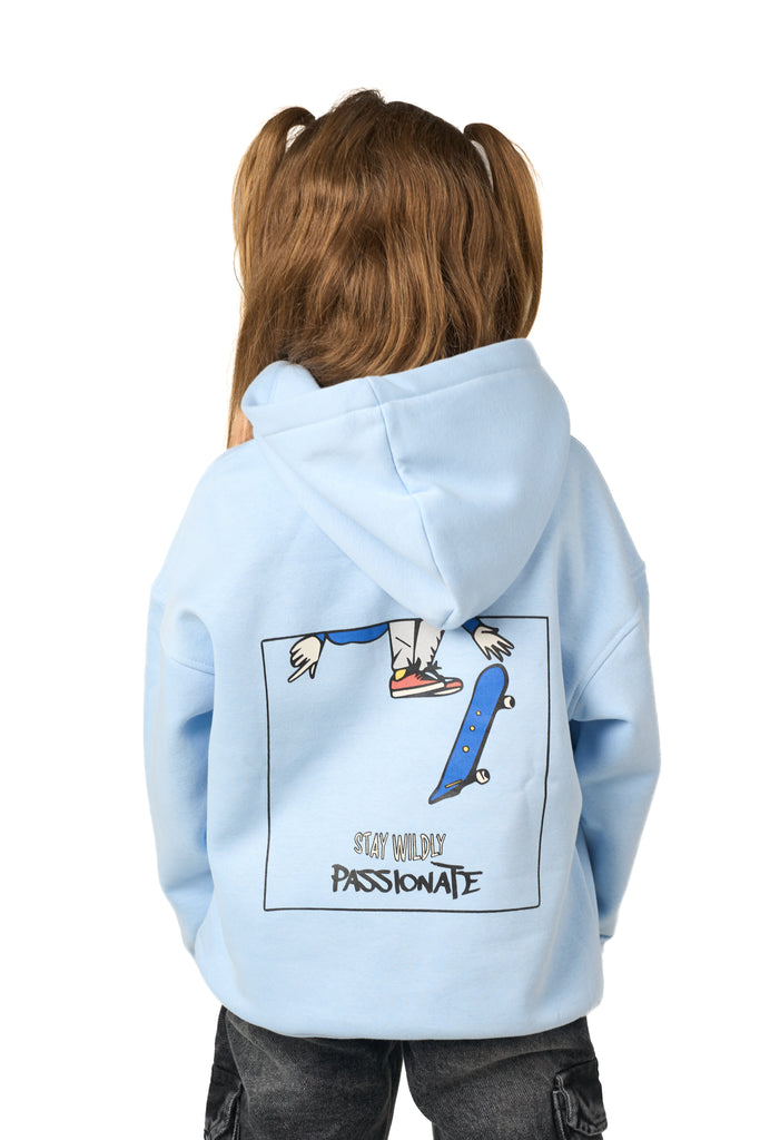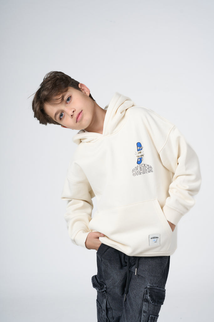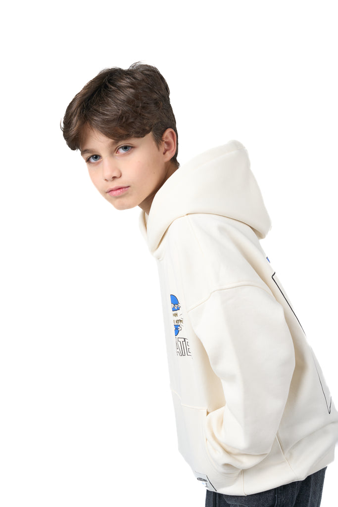 Oversized fit hoodie made of cotton fabric with a brushed fleece interior. Long sleeves and contrast prints on the front and back. Ribbed trims.