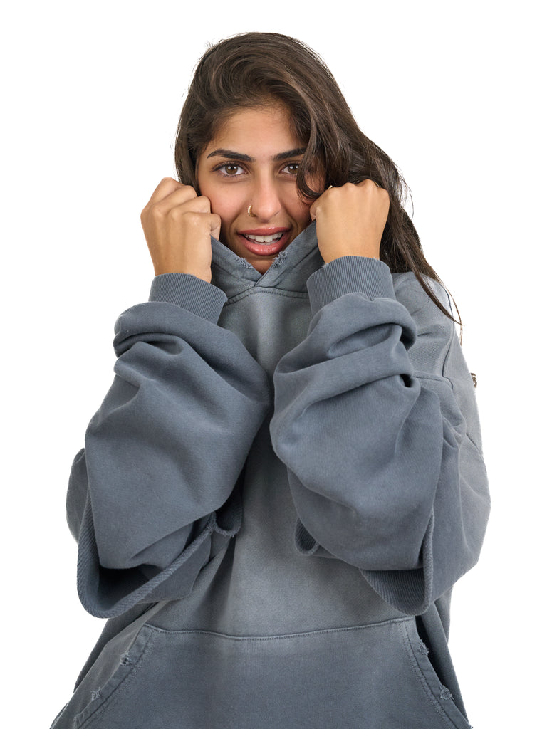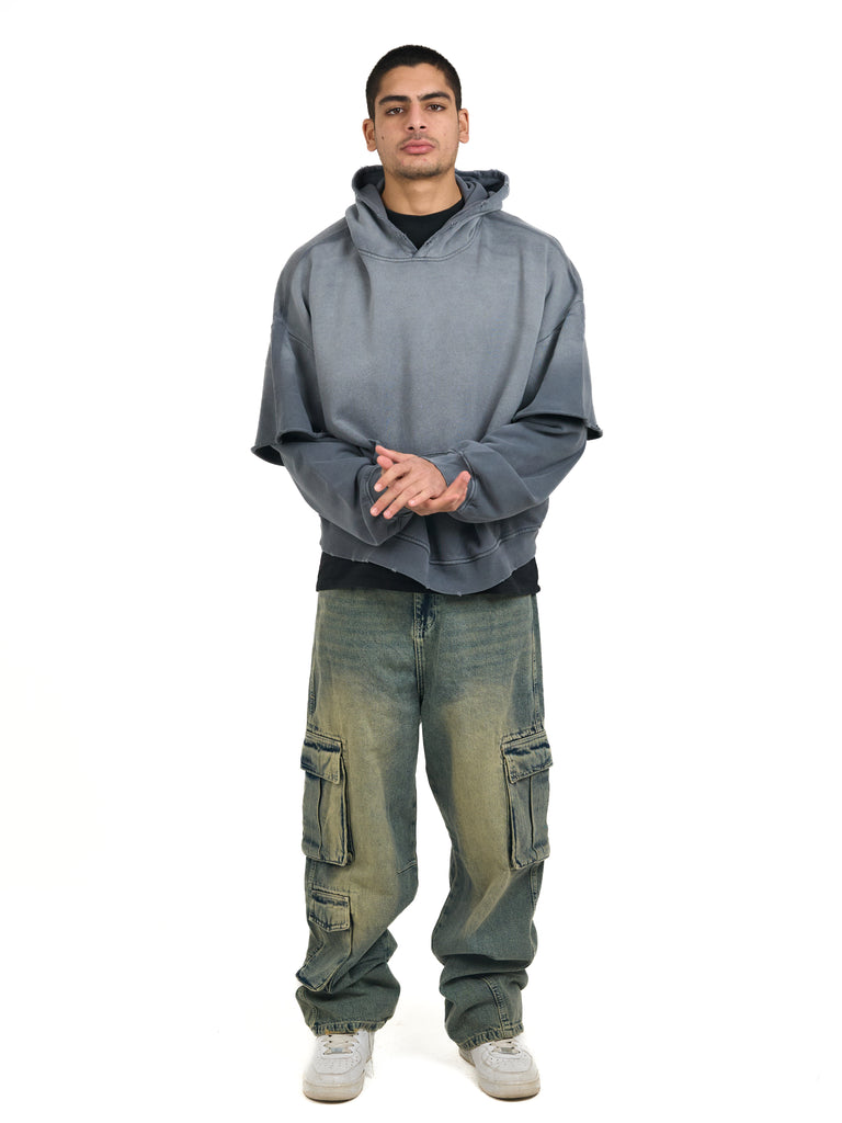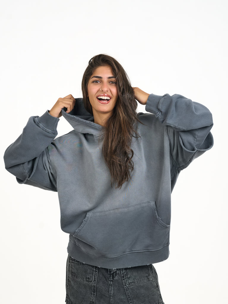 Washed Boxy fit hoodie made of cotton fabric. Long sleeves & Ribbed trims.