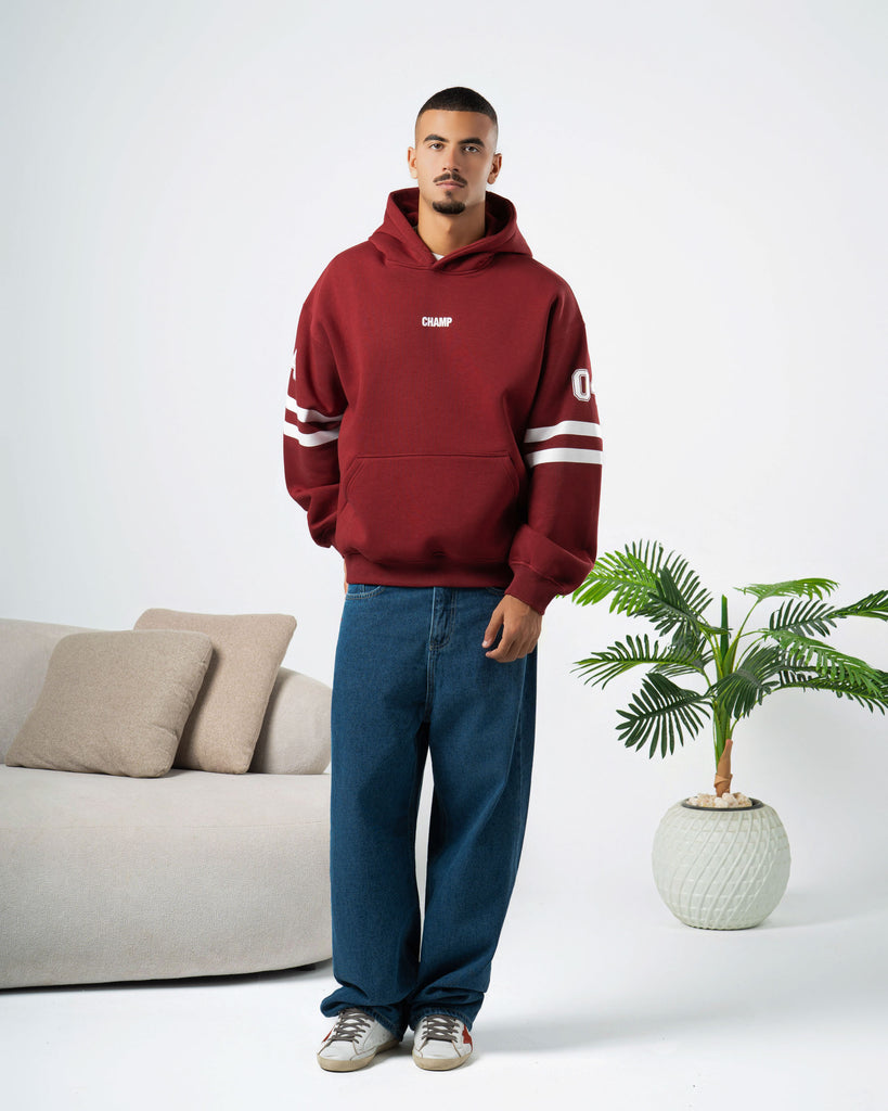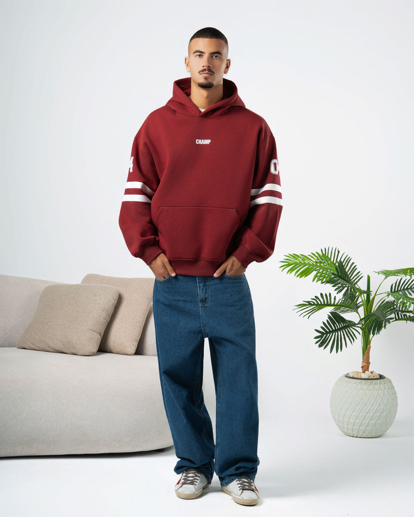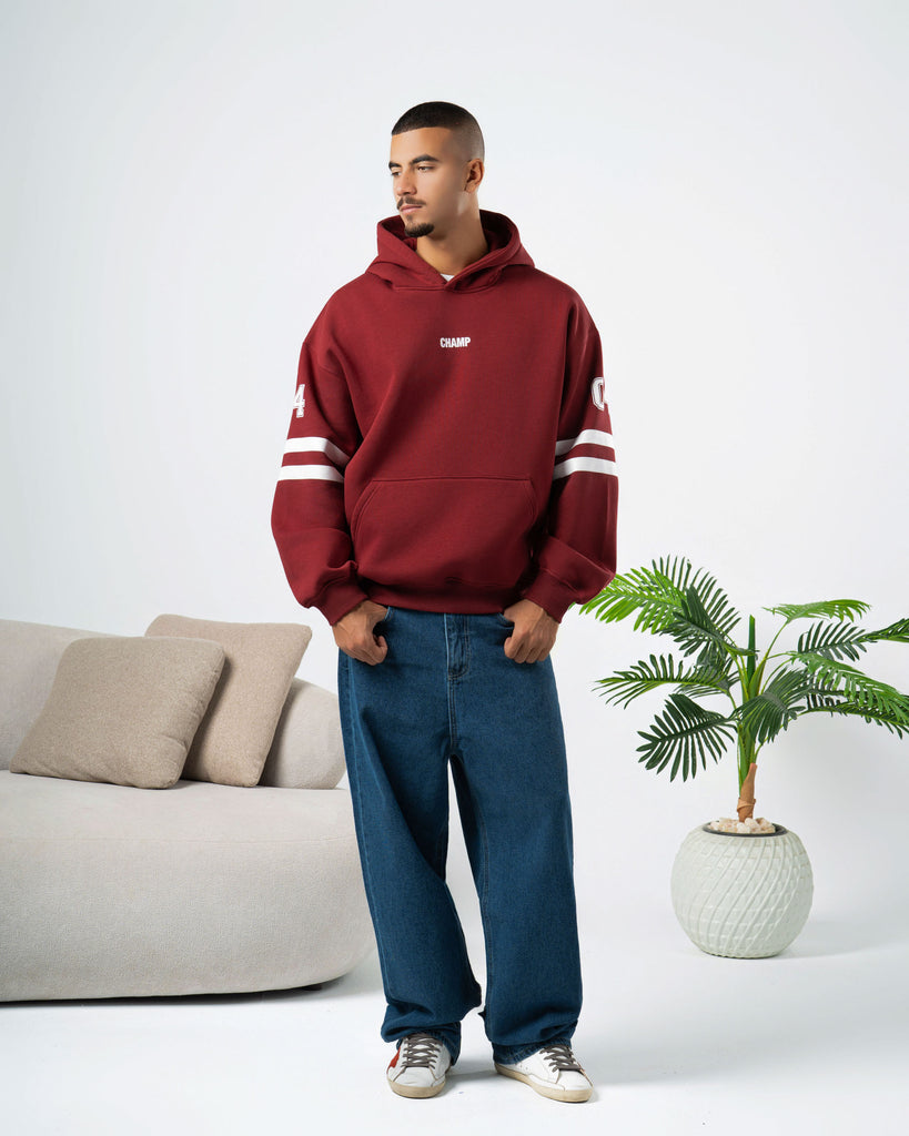 Oversized fit hoodie made of cotton fabric with a brushed fleece interior .Long sleeves and contrast print on the front ,back and sleeves . Ribbed trims.