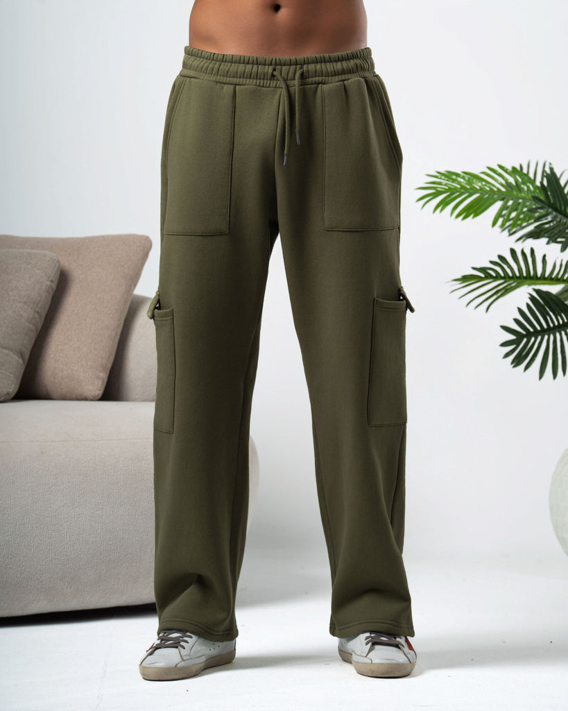 Uni-Sex Army Olive Wide Leg Sweat Pants