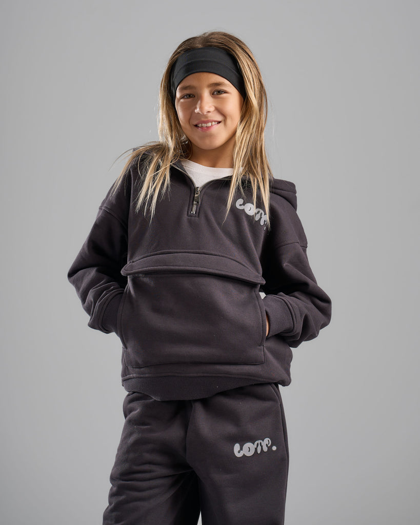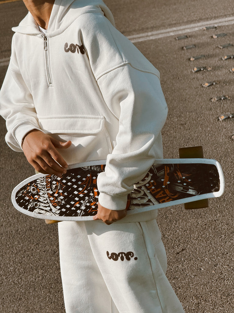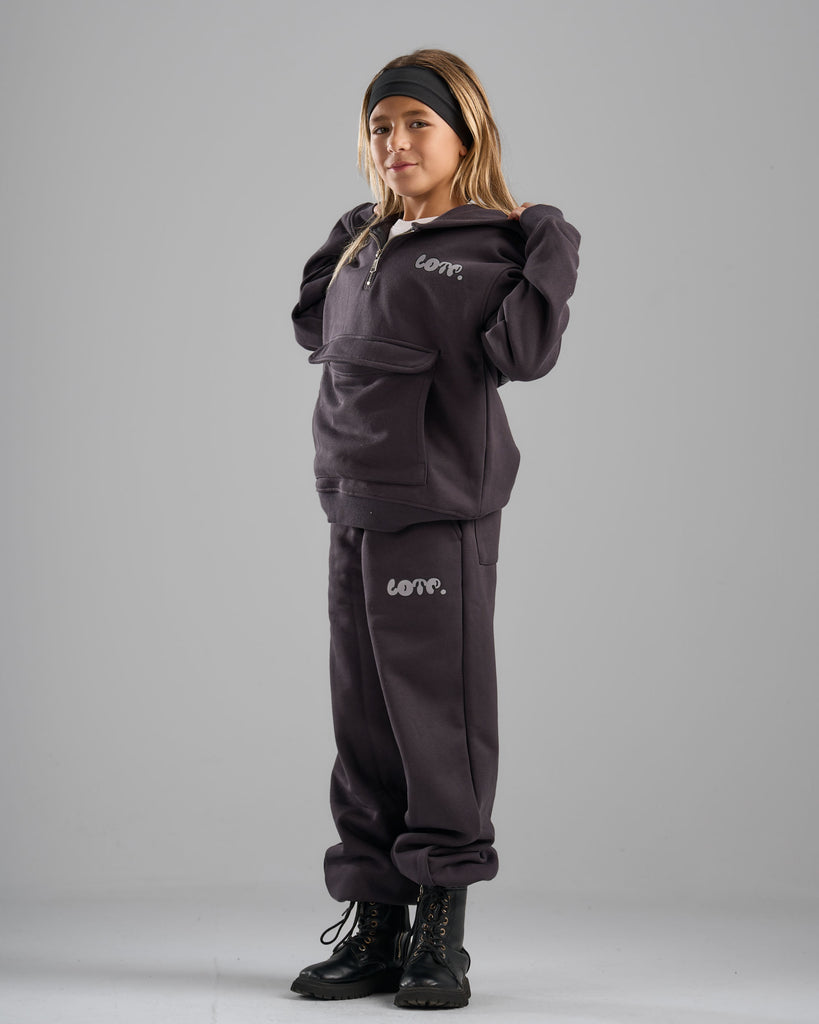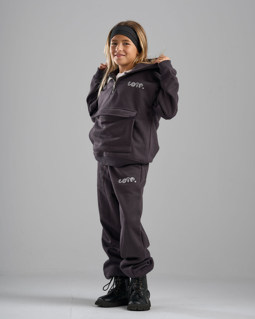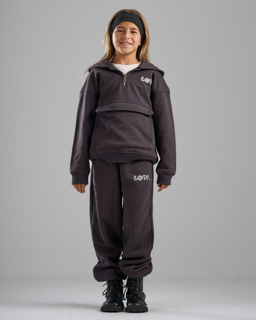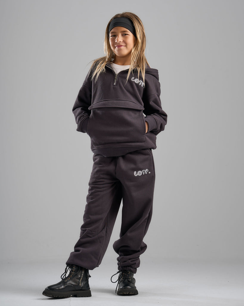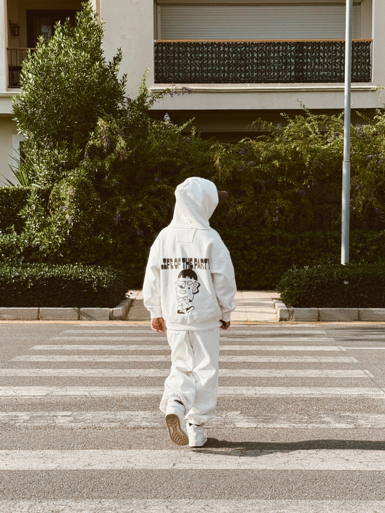 Two-piece printed set. long sleeve Hoodie with a kangaroo pocket. Ribbed trims. Jogger trousers with an elasticated waist and wide leg.