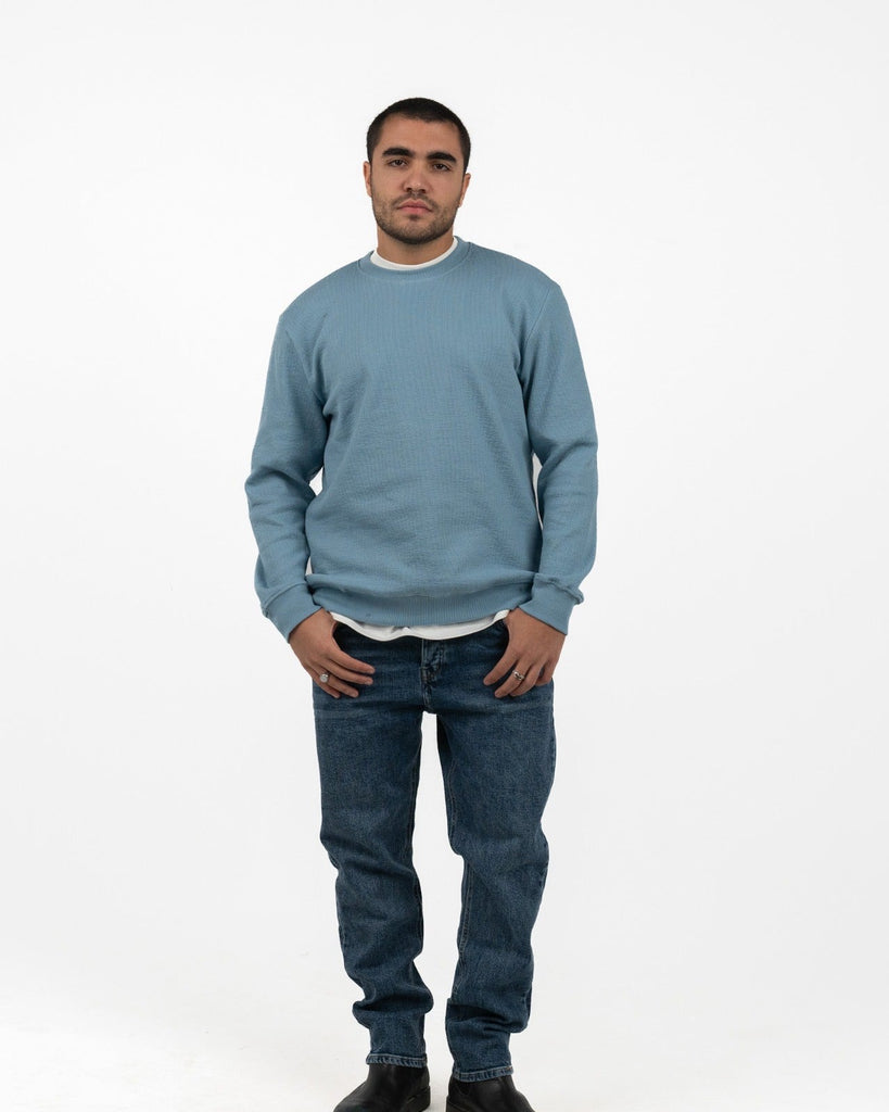Regular fit sweatshirt crafted from textured fabric. Featuring a round neck, long sleeves and ribbed trims.