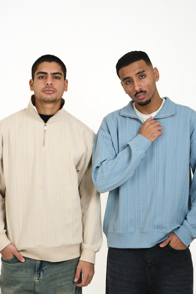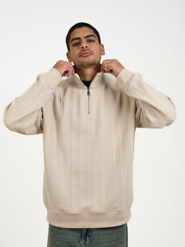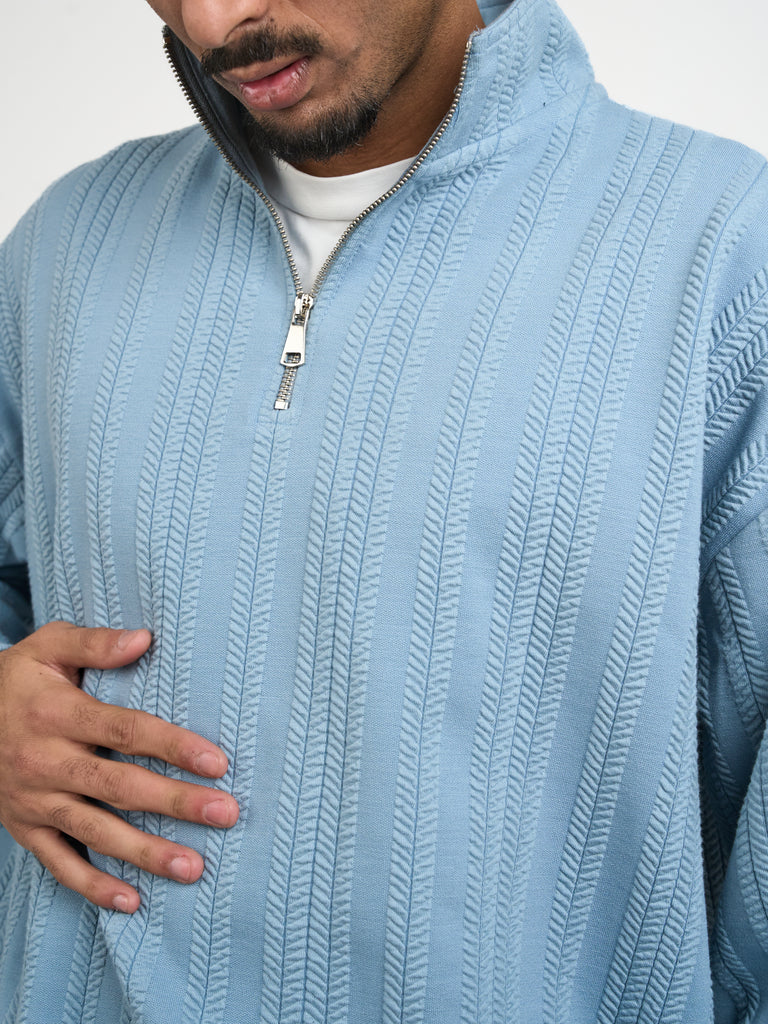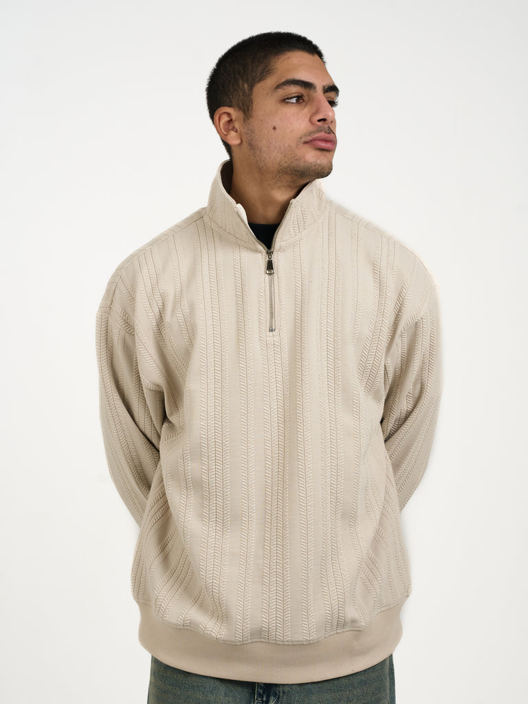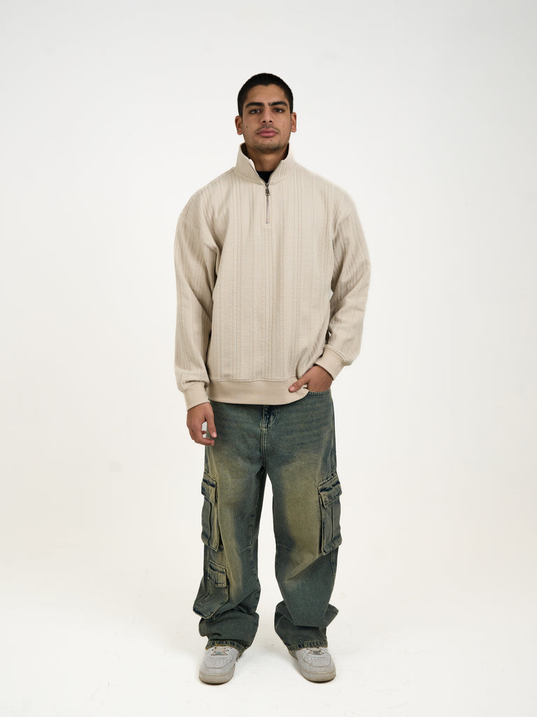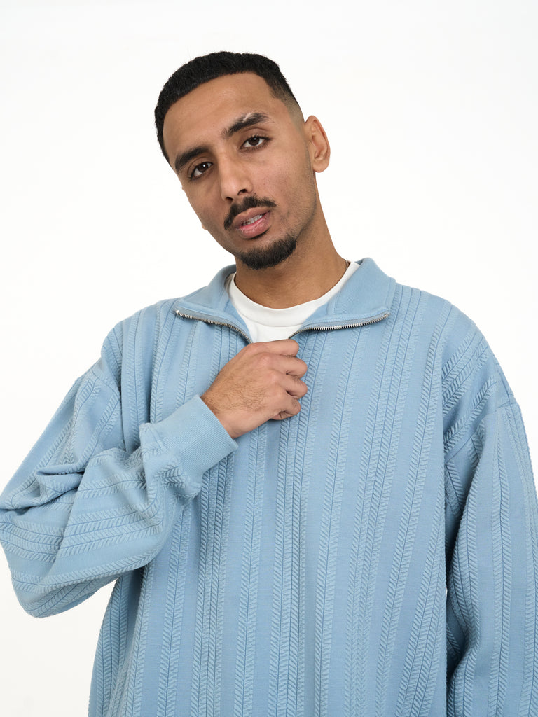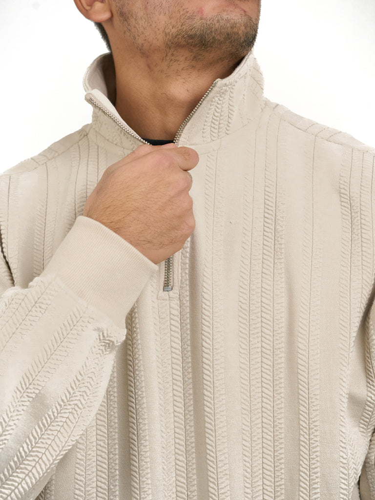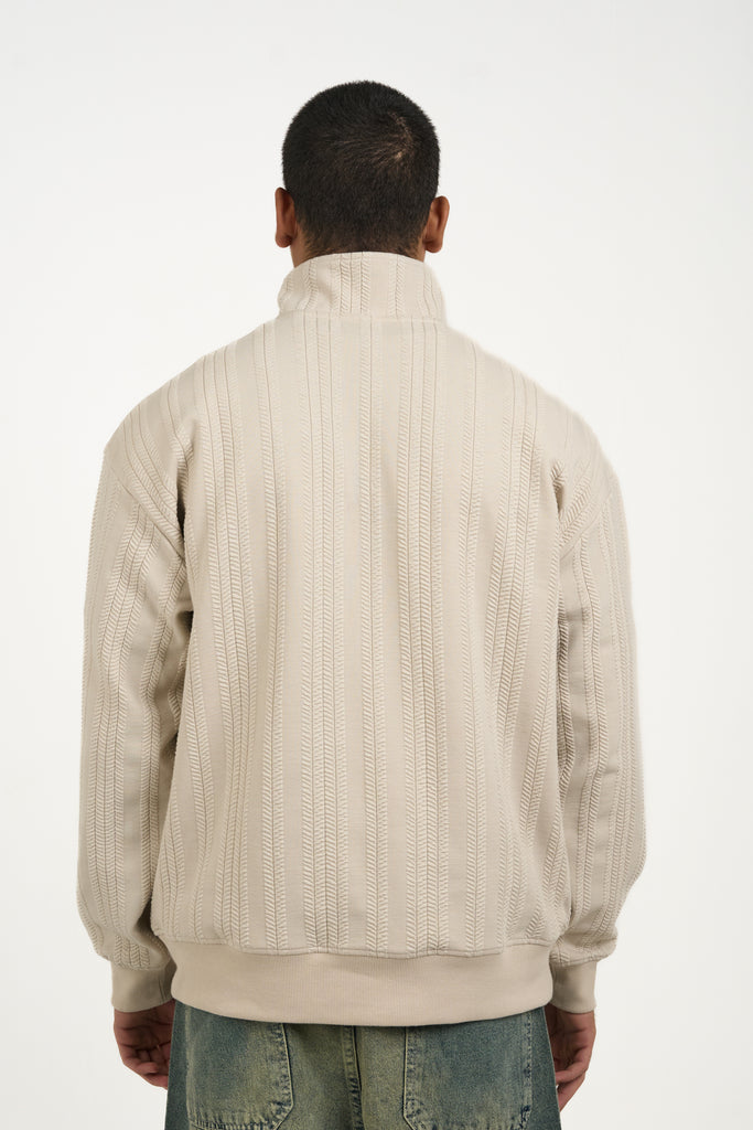 Regular fit high neck sweatshirt with front zip, long sleeves and ribbed trims. Made from cotton fabric with brushed fleece interior.