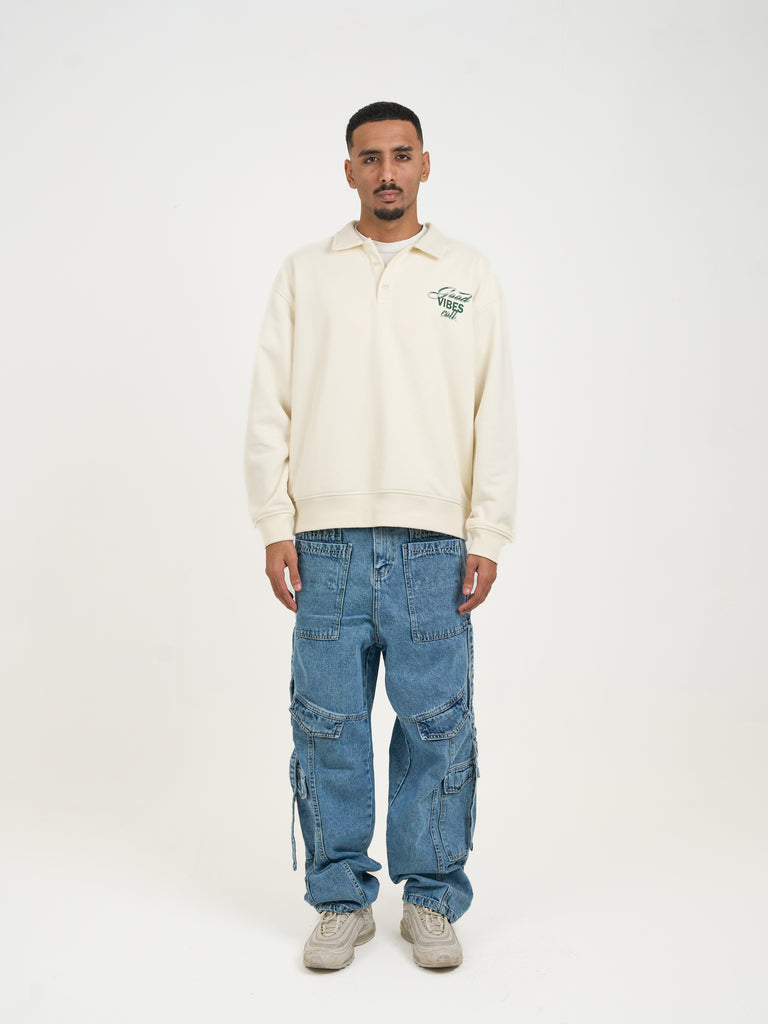 Good Vibes Melton Polo in Offwhite