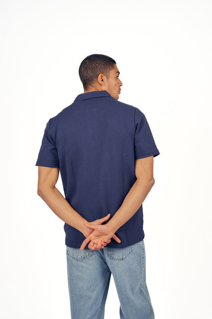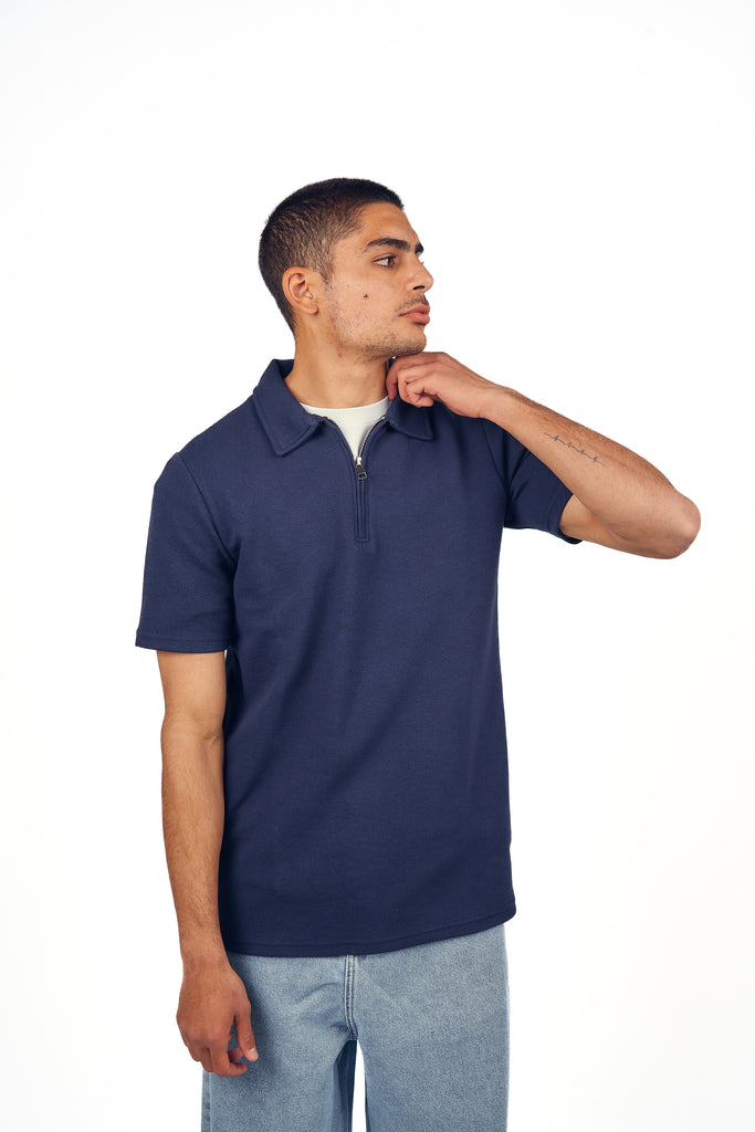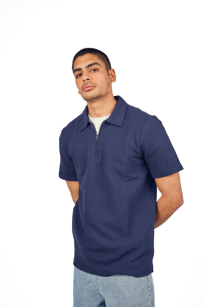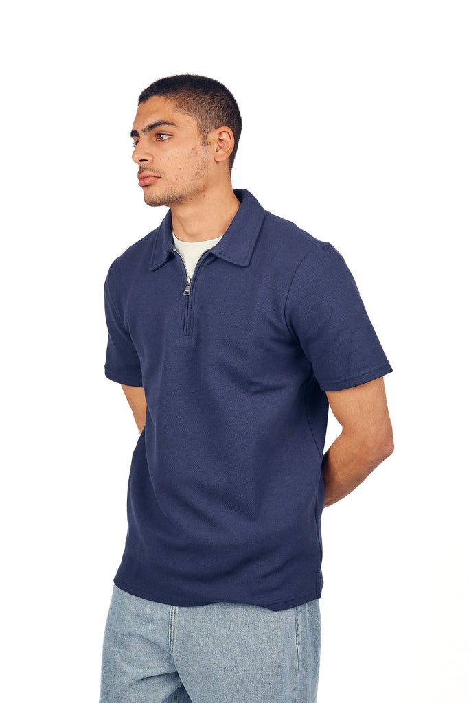 Navy Textured Quarter Zip Polo Shirt