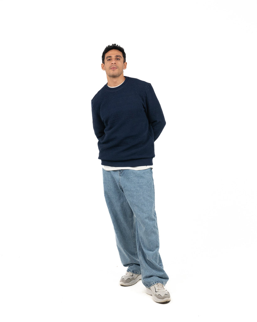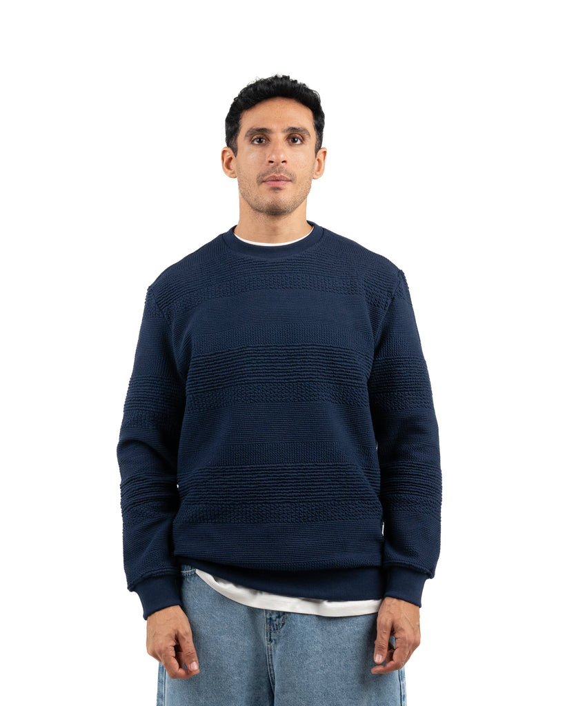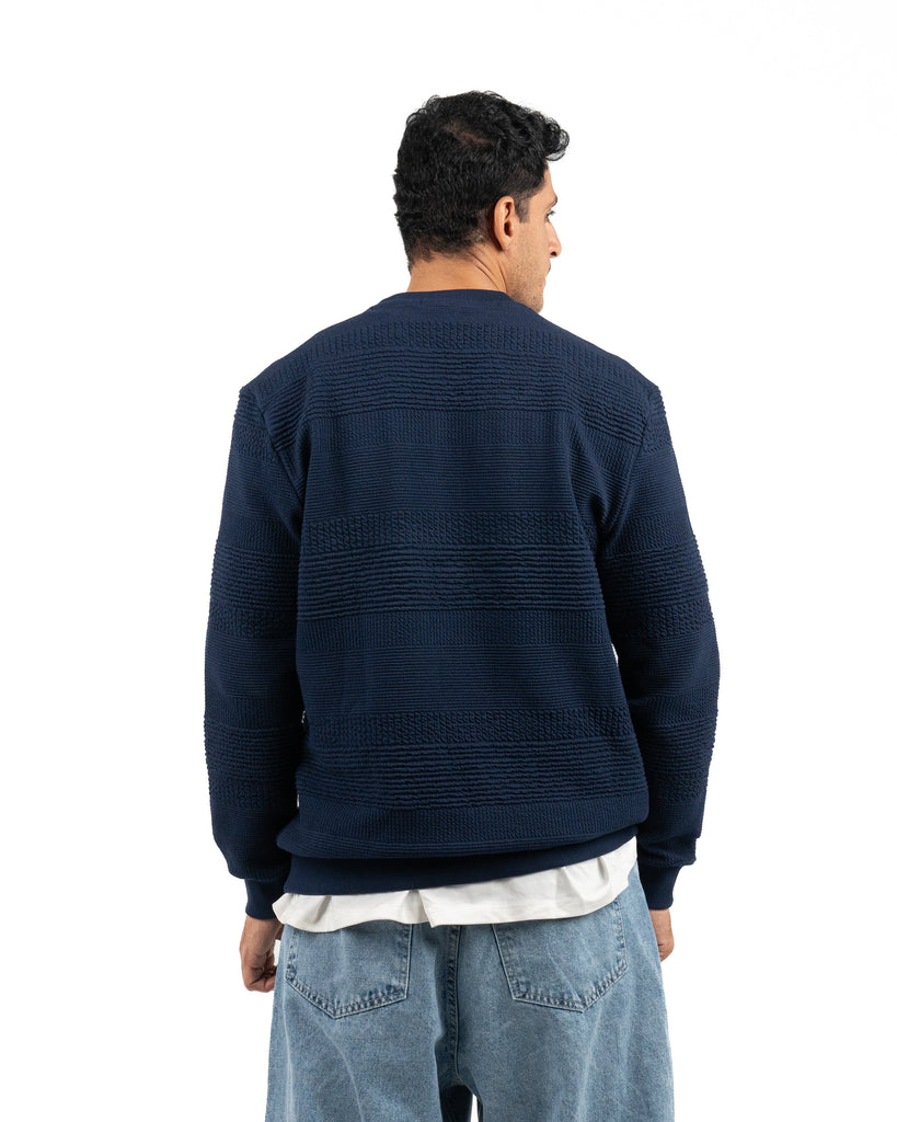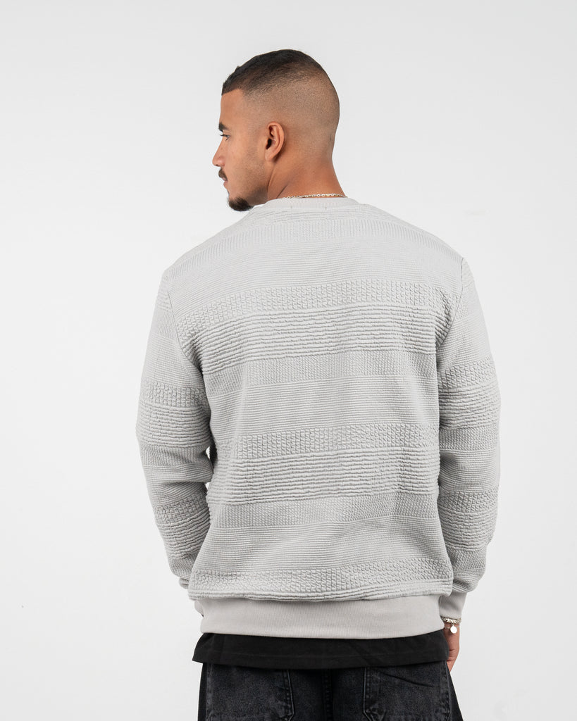 Regular fit sweatshirt crafted from textured fabric. Featuring a round neck, long sleeves, ribbed trims and metal accessory at the end of the sweatshirt.