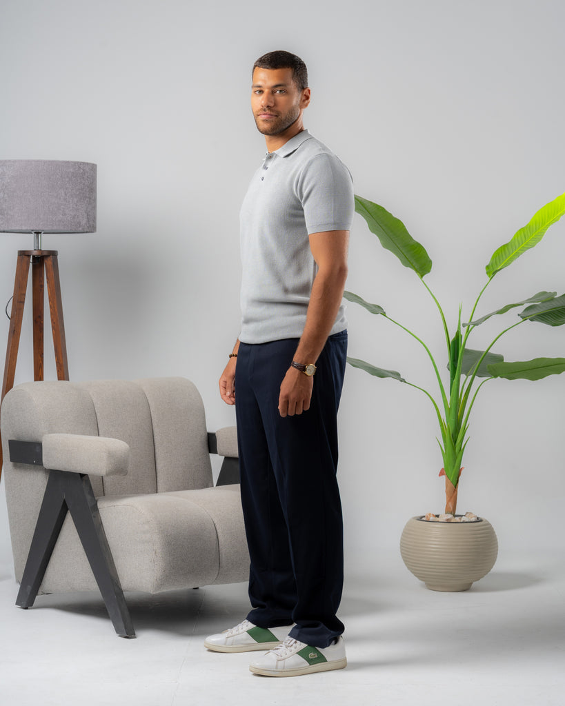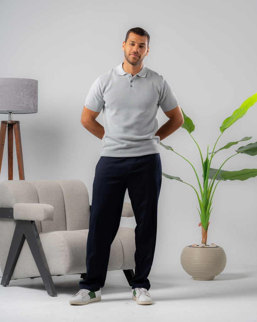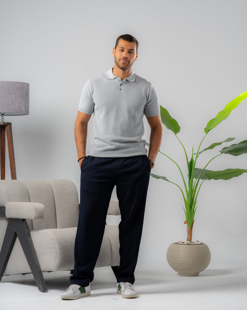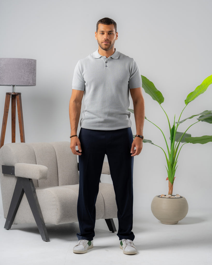 Textured Knit Polo Shirt silver