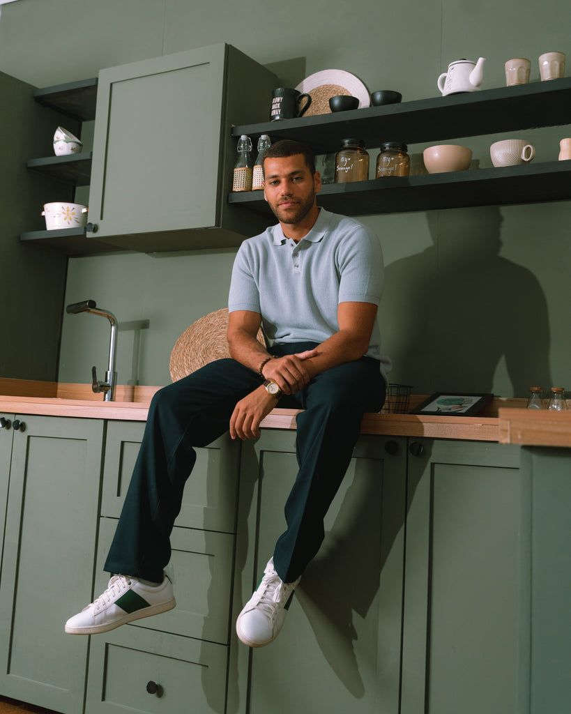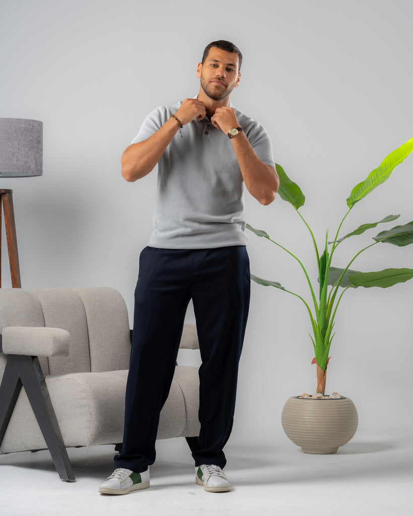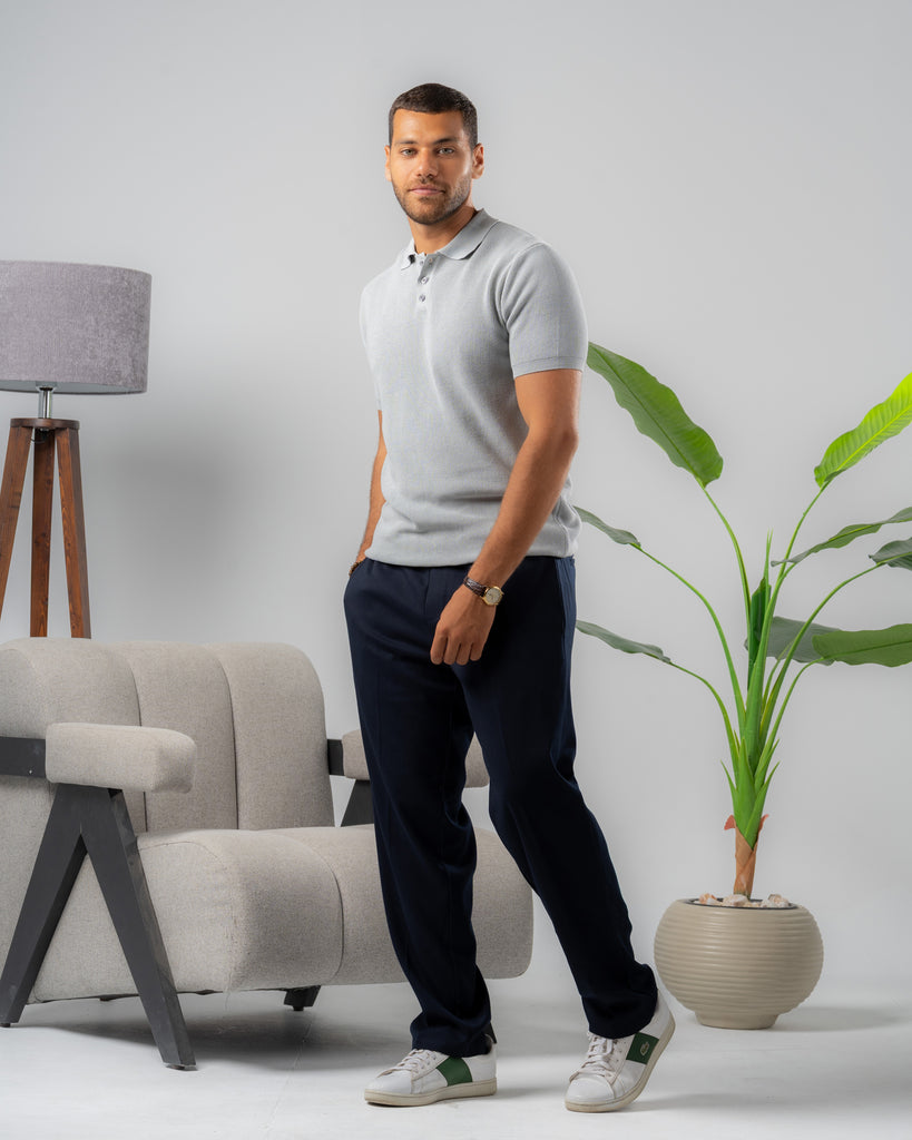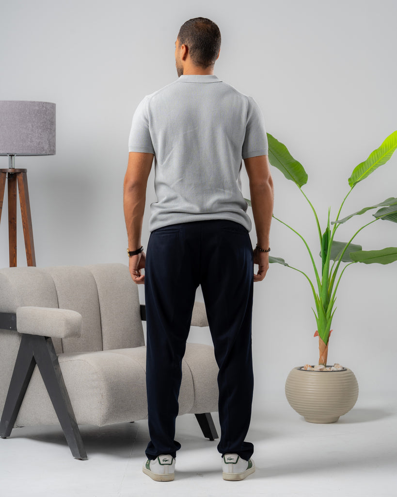Textured Knit Polo Shirt silver