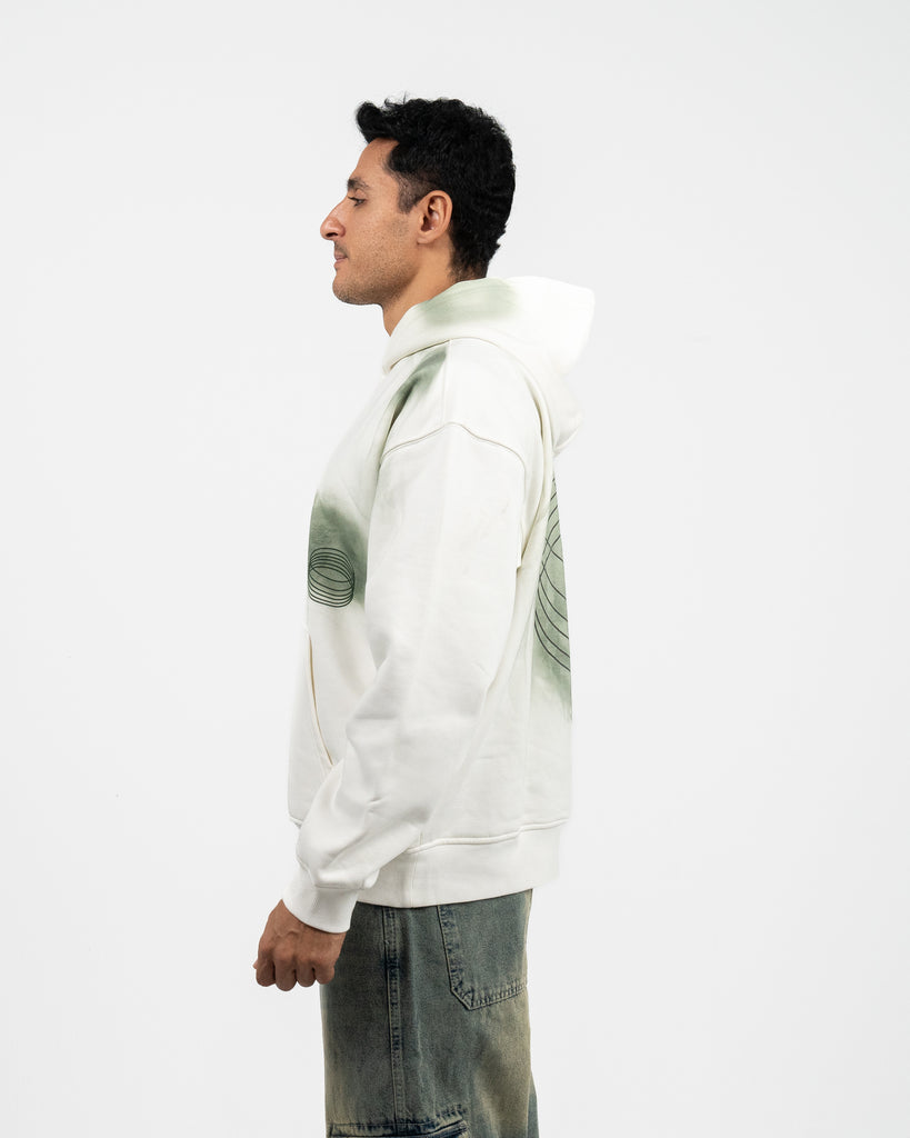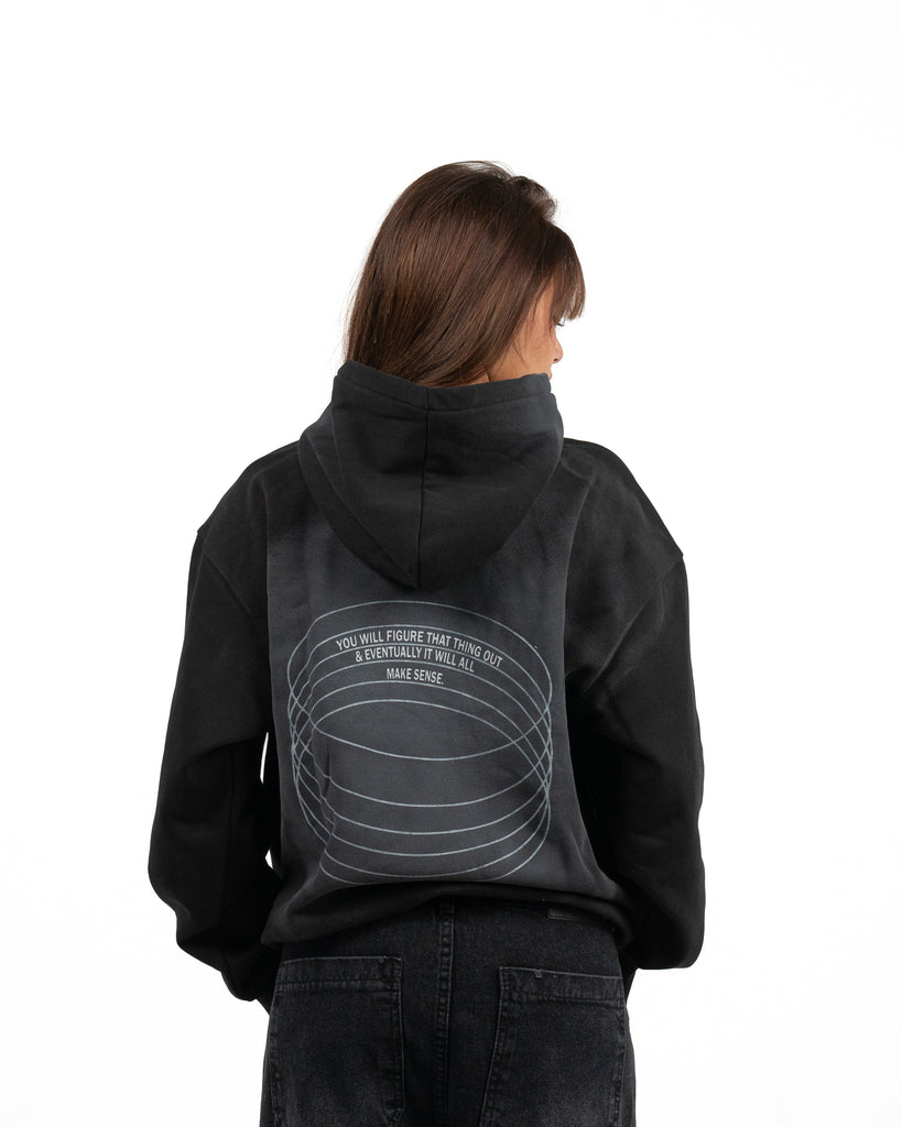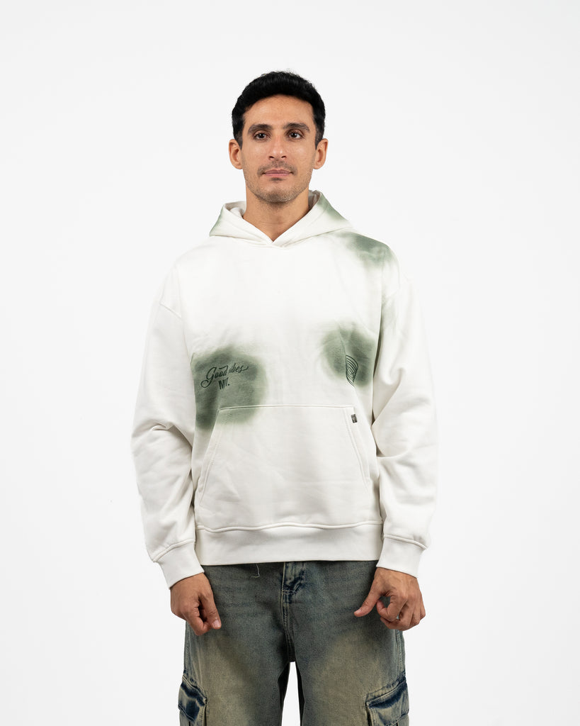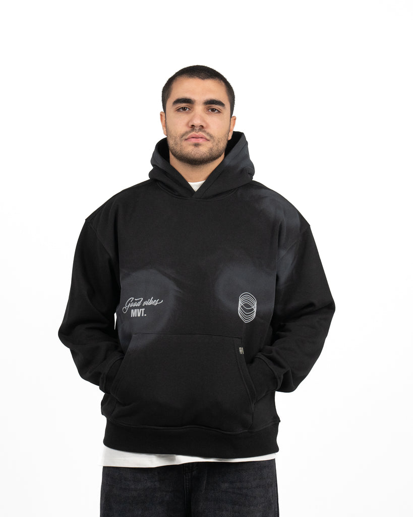 Oversized fit hoodie made of cotton fabric with a brushed fleece interior. Long sleeves and contrast prints on the front and back. Ribbed trims.