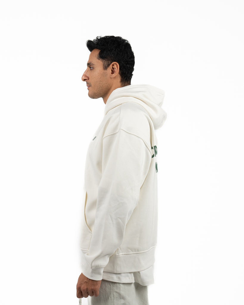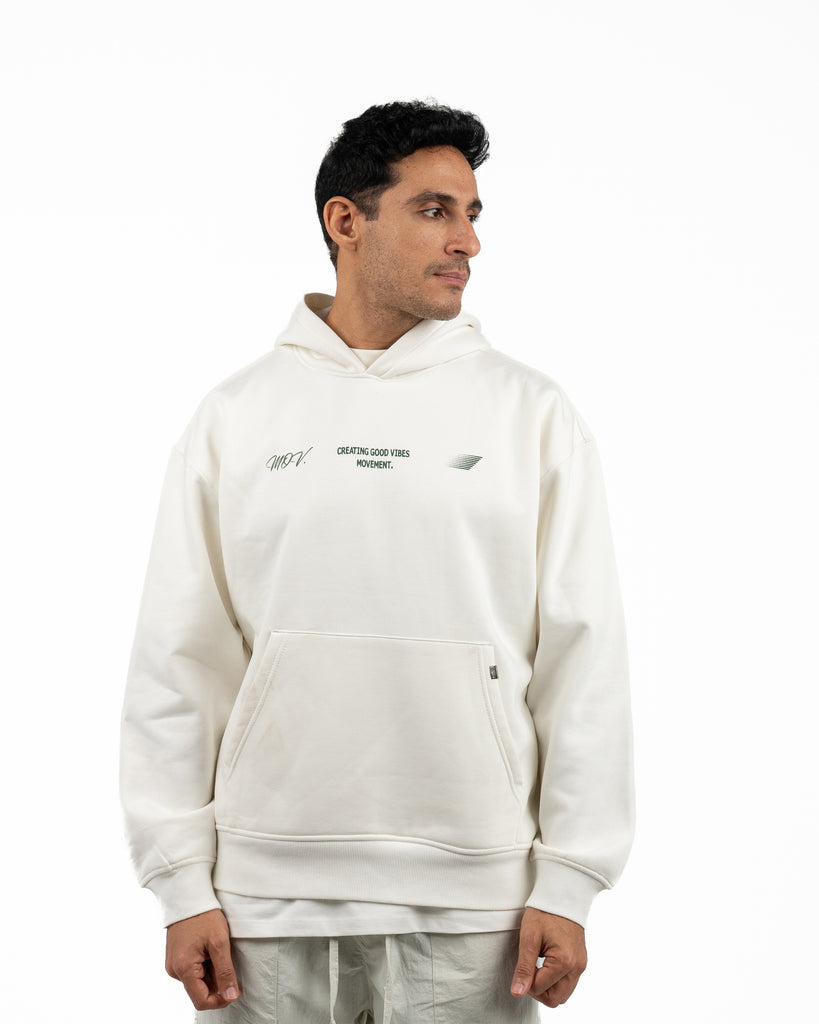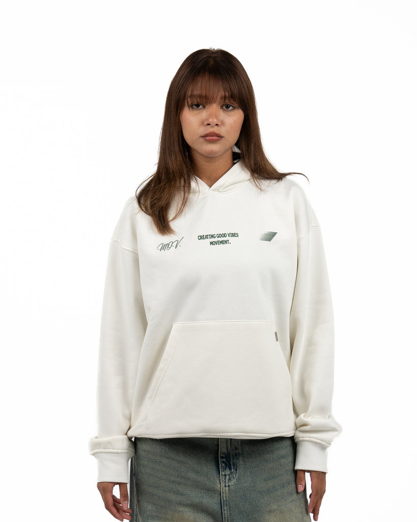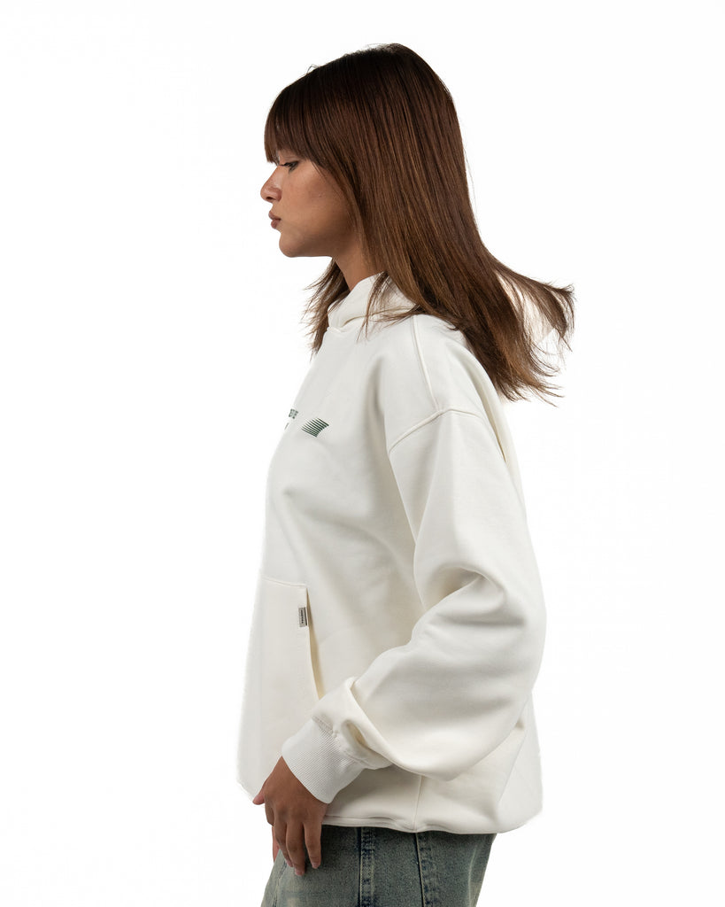 Oversized fit hoodie made of cotton fabric with a brushed fleece interior. Long sleeves and contrast prints on the front and back. Ribbed trims.