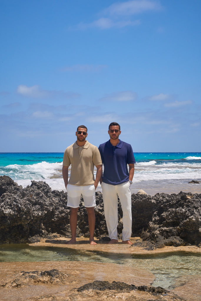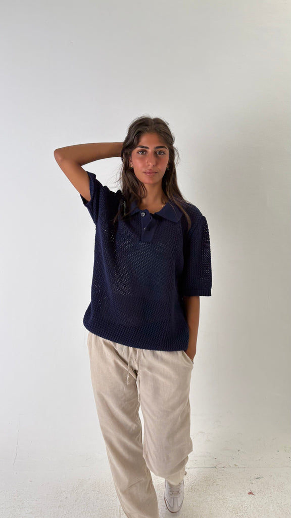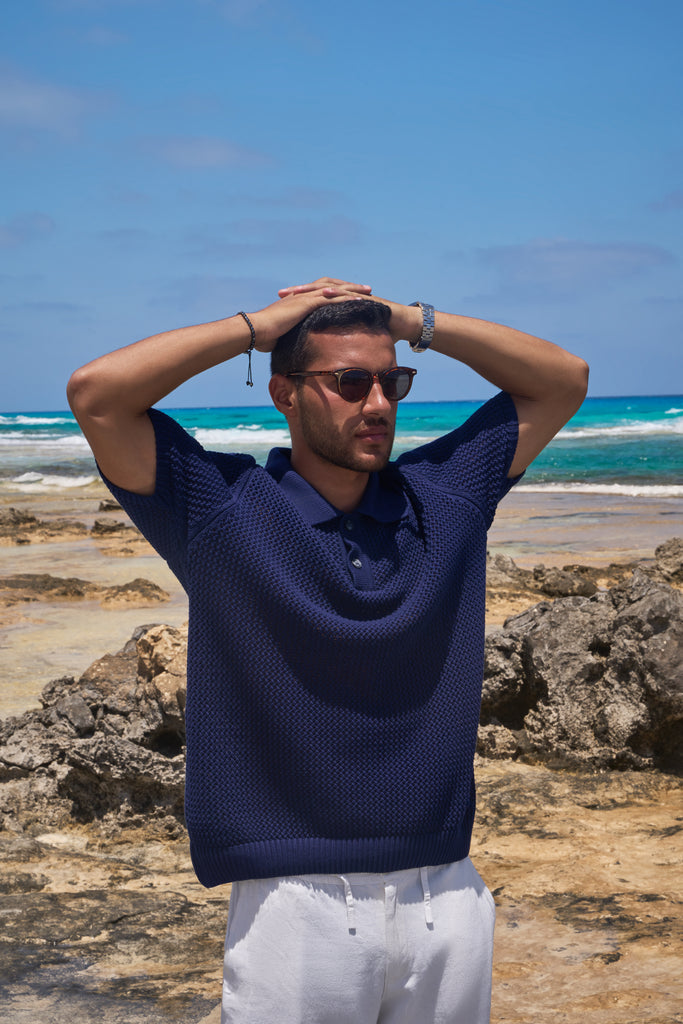 Button Up Knit Polo Shirt Navy