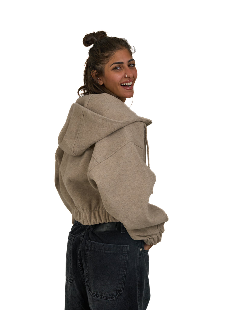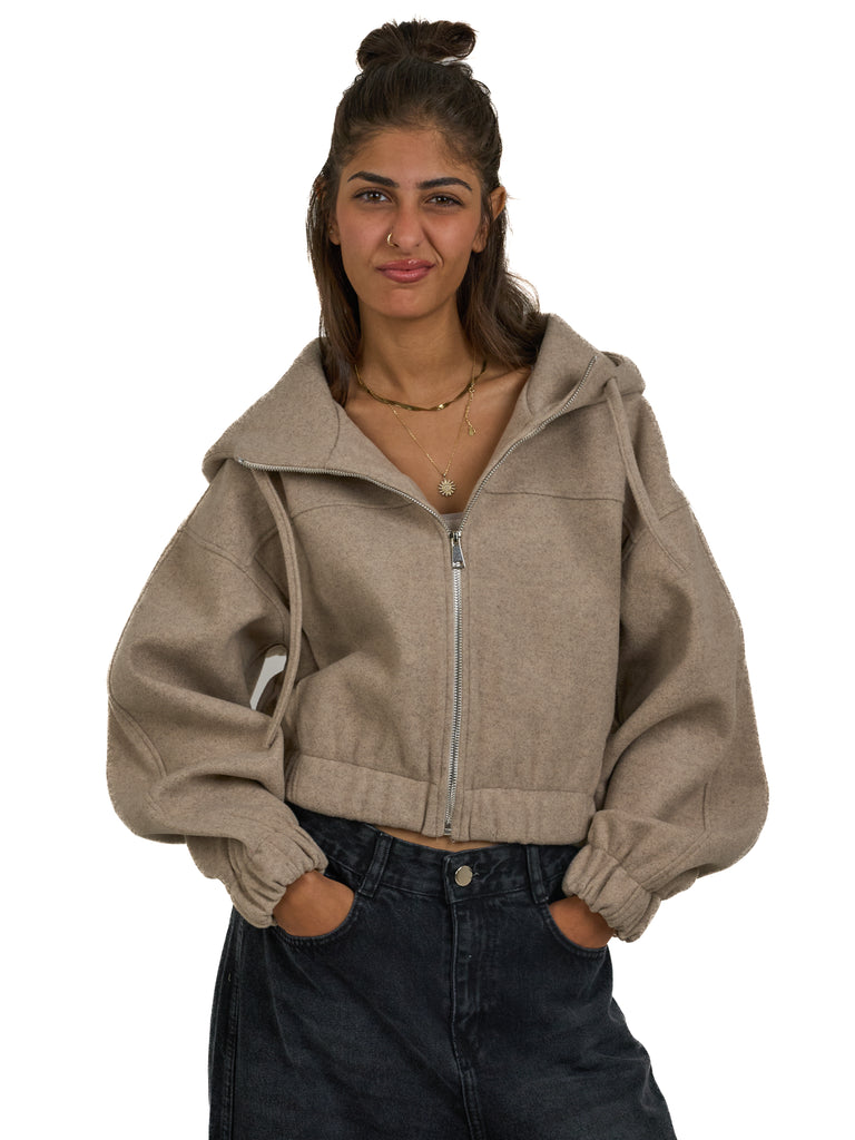 Cropped Zip Up Jacket in Mocha
