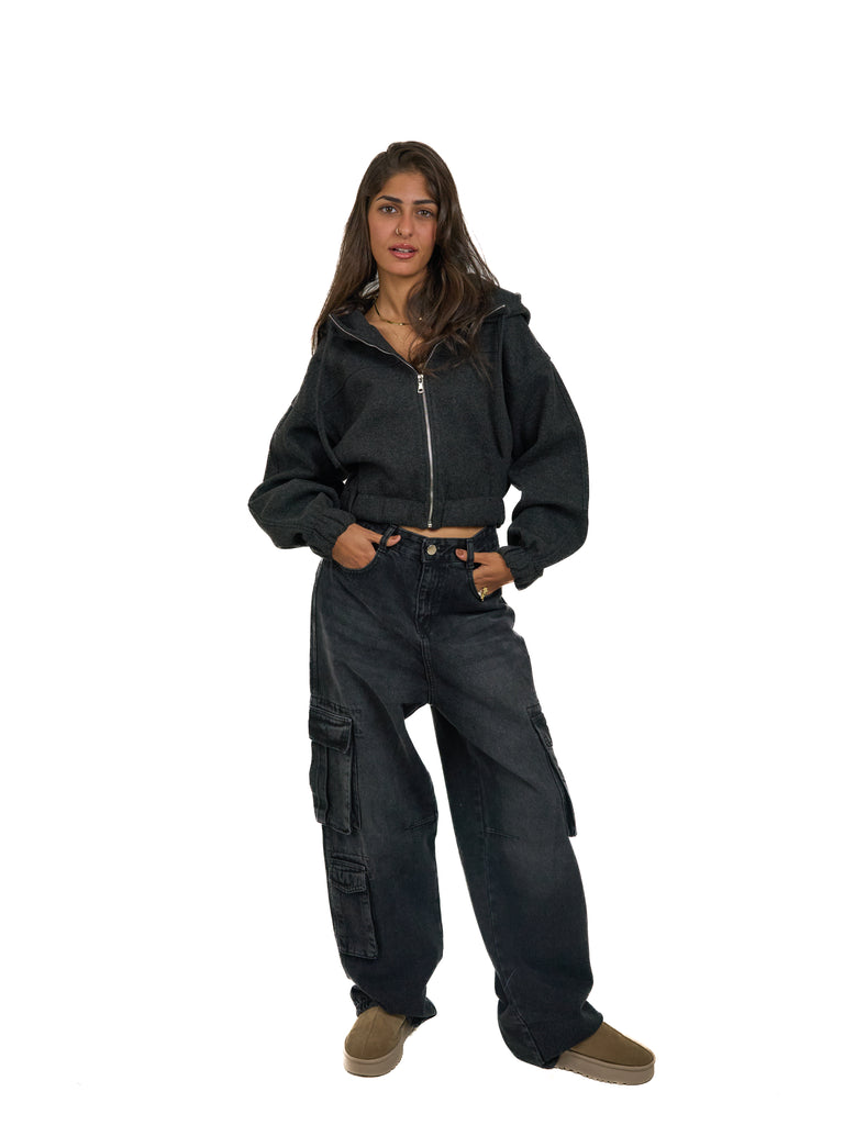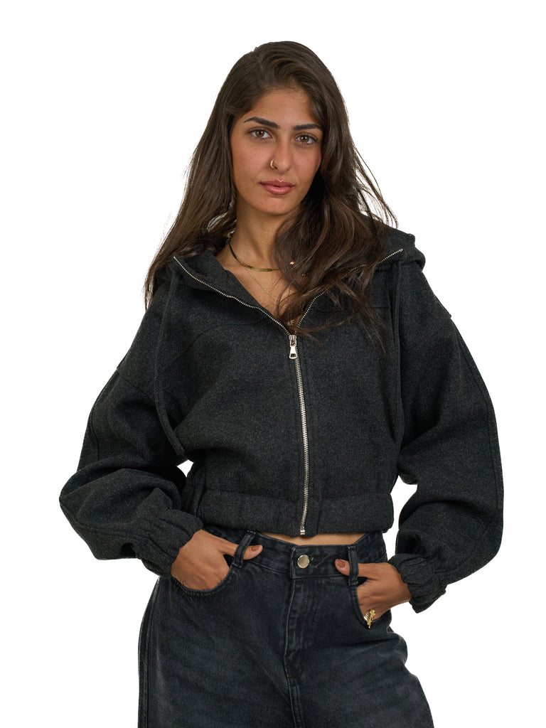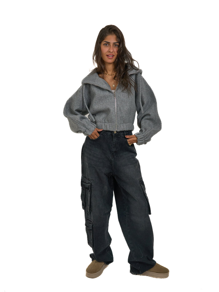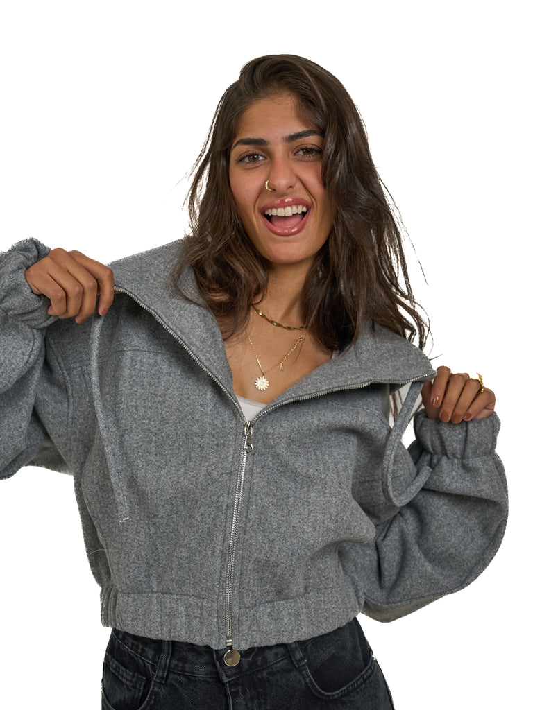 Cropped Zip Up Jacket in Grey