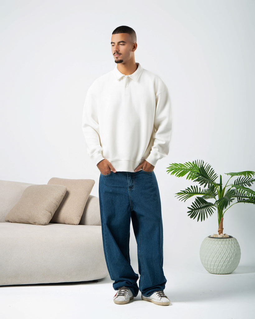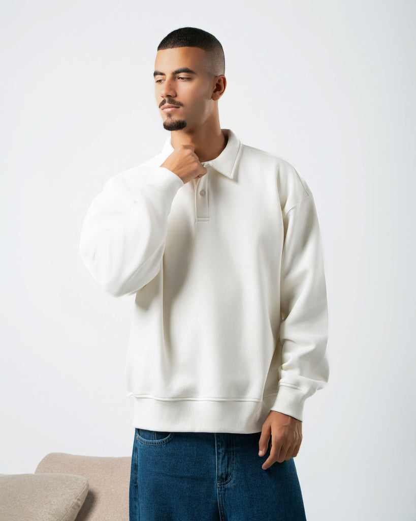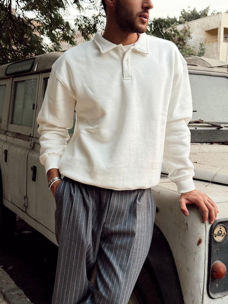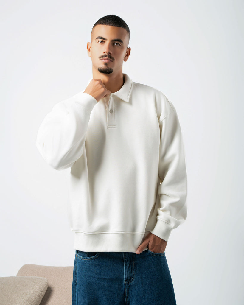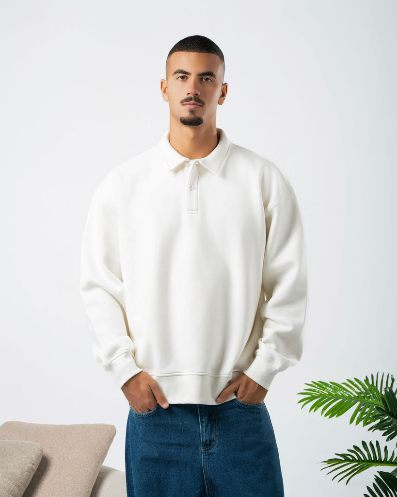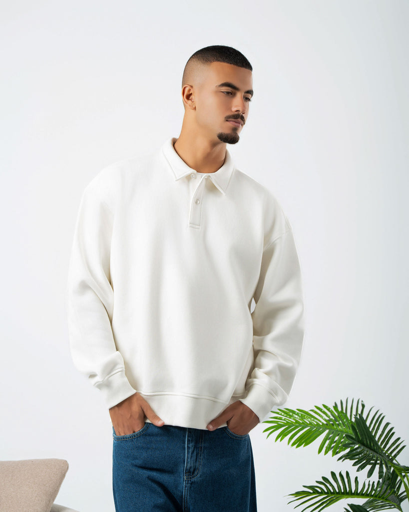 Relaxed fit polo shirt made of Cotton fabric. Features a collar, long sleeves and ribbed trims.